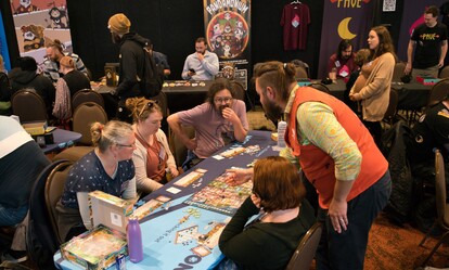 Looking for a game to play? Borrow one of ours. Want a recommendation? Ask a volunteer. Need help learning a game? Put a 'need help' flag on your table. Looking for other players? Use Aftergame to get players to your table. With hundreds of games to borrow and play, we've got you covered. Please bring along your collection just clearly label the outside of the box for any games you add to the library.